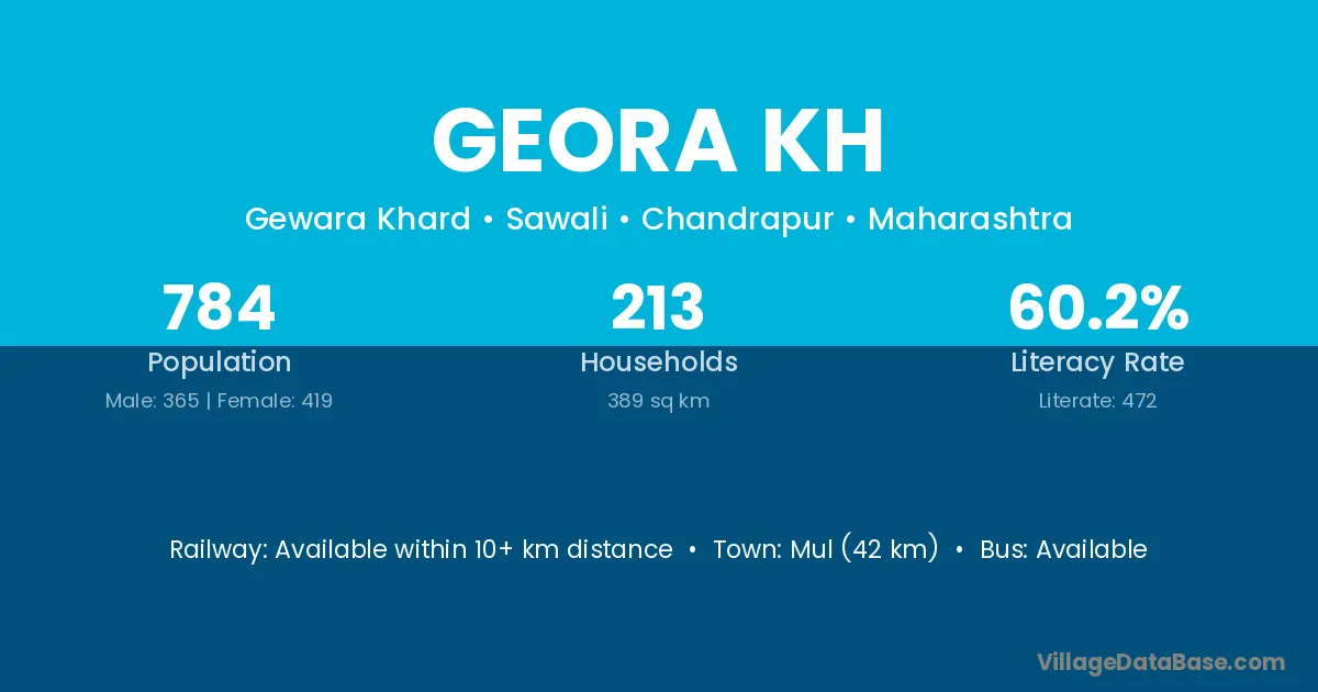 Mul (42 km) is the nearest town to Geora Kh village for major economic activities and is located approximately 42 km away.