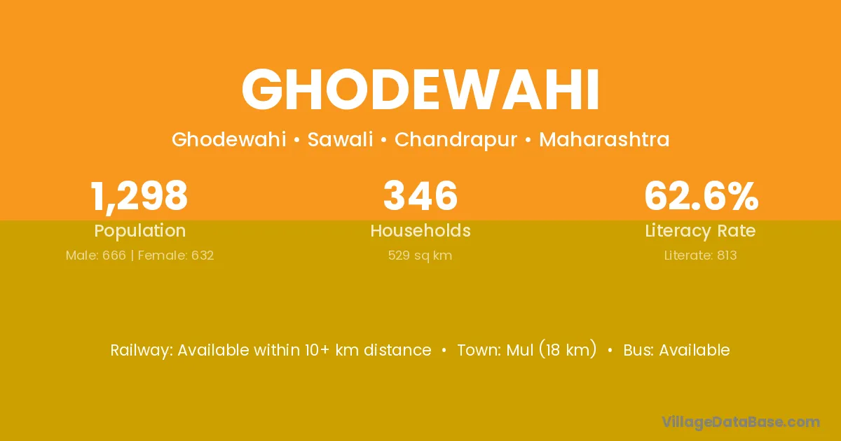 Mul (18 km) is the nearest town to Ghodewahi village for major economic activities and is located approximately 18 km away.