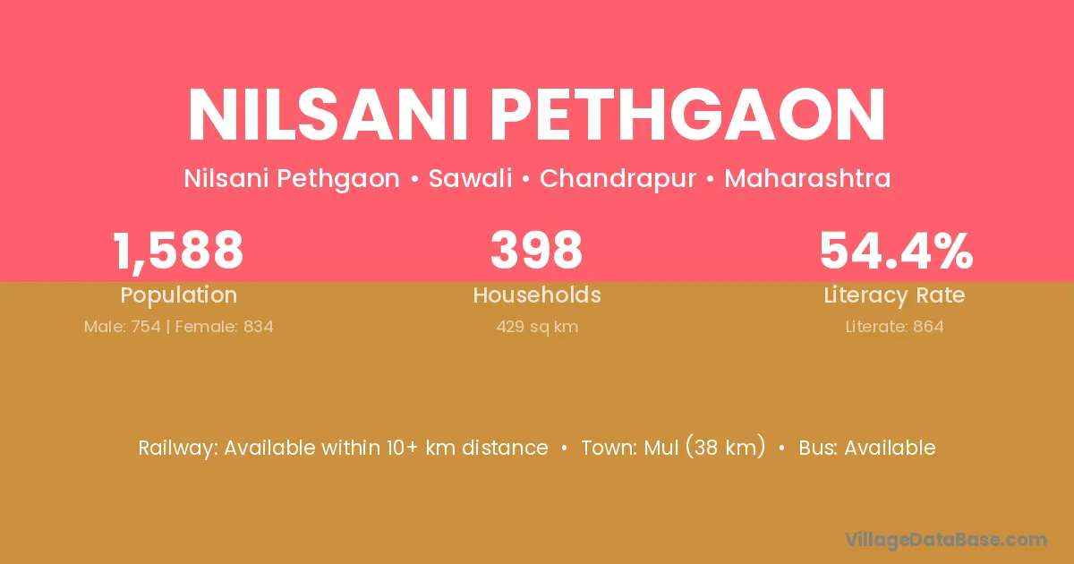 Mul (38 km) is the nearest town to Nilsani Pethgaon village for major economic activities and is located approximately 38 km away.