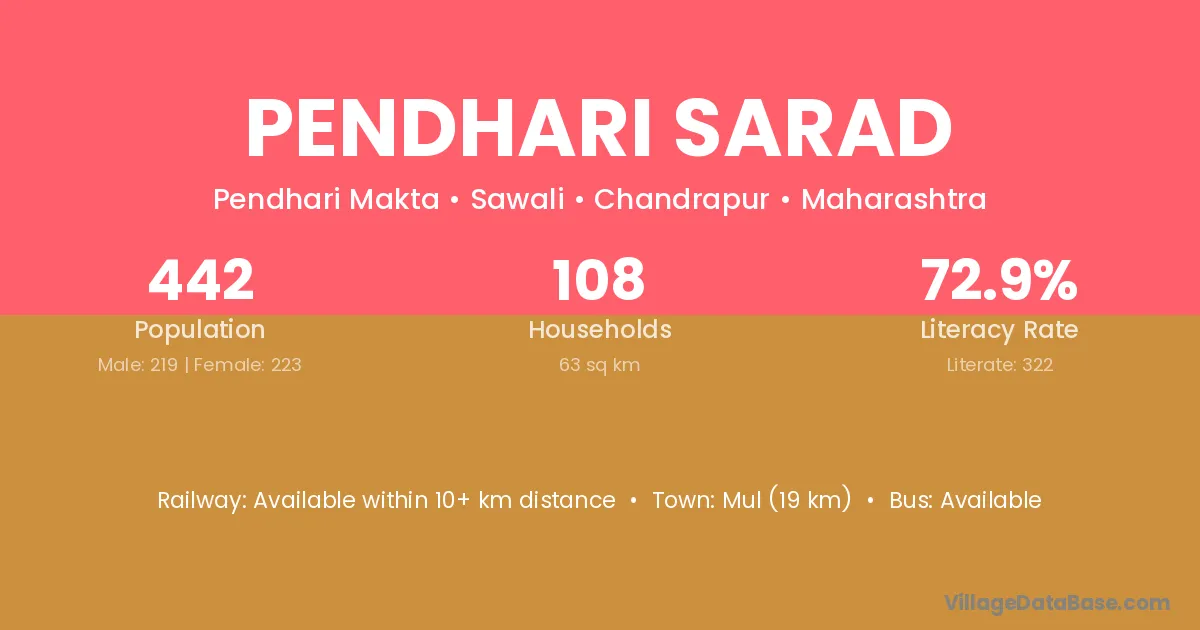 Pendhari Sarad village has a total population of 442 people, of which 219 are males and 223 are females.