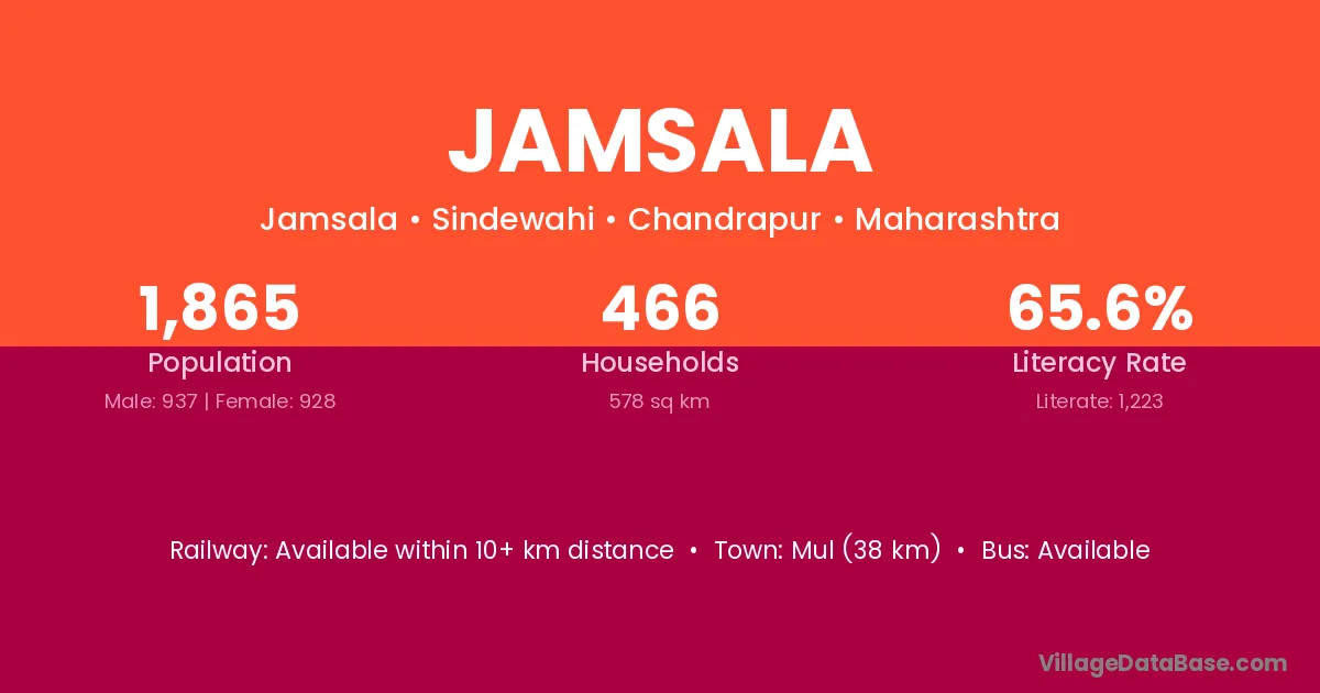 Mul (38 km) is the nearest town to Jamsala village for major economic activities and is located approximately 38 km away.