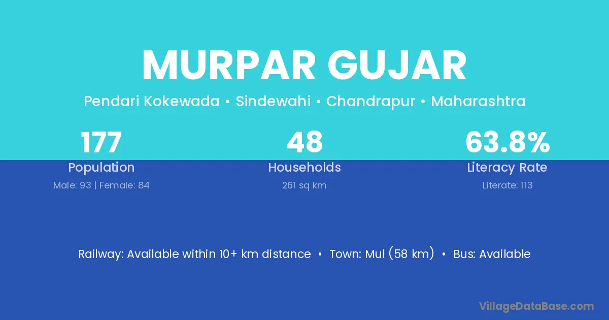 Mul (58 km) is the nearest town to Murpar Gujar village for major economic activities and is located approximately 58 km away.
