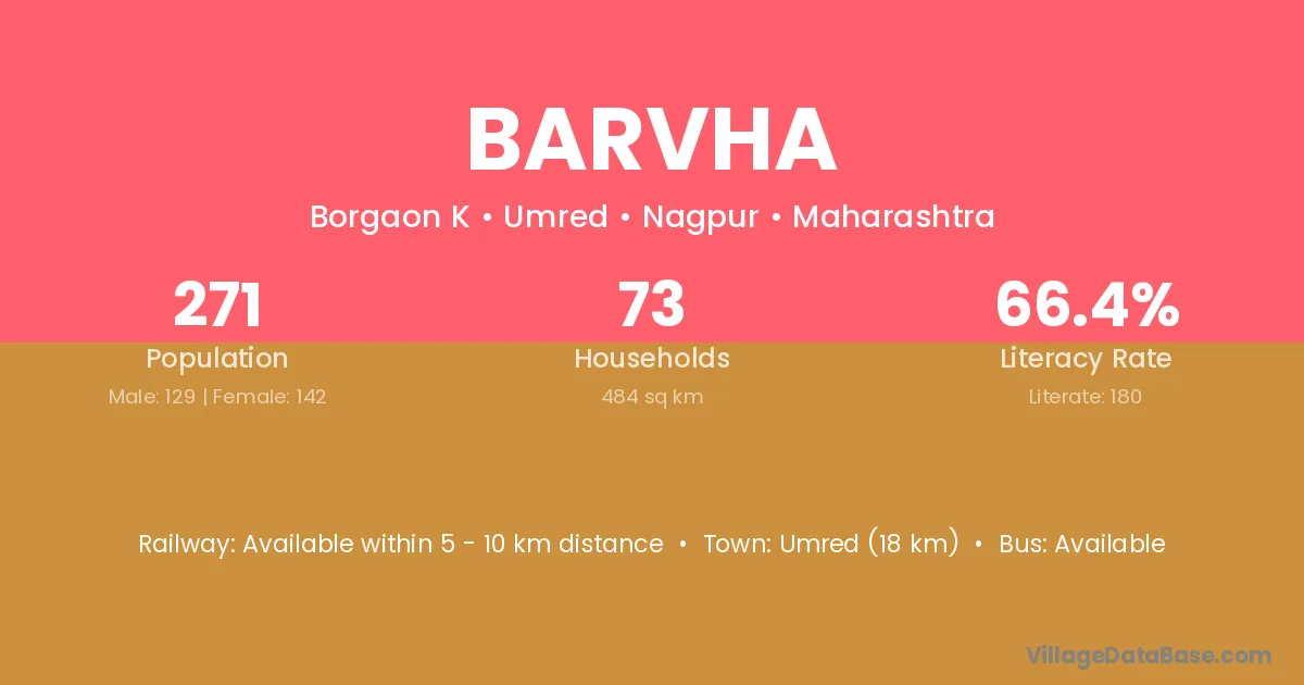 Warora (28 km) is the nearest town to Barvha village for major economic activities and is located approximately 28 km away.