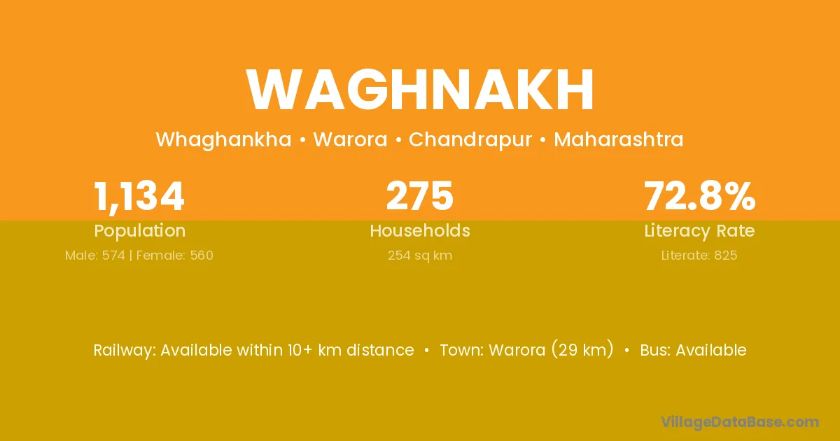 Warora (29 km) is the nearest town to Waghnakh village for major economic activities and is located approximately 29 km away.