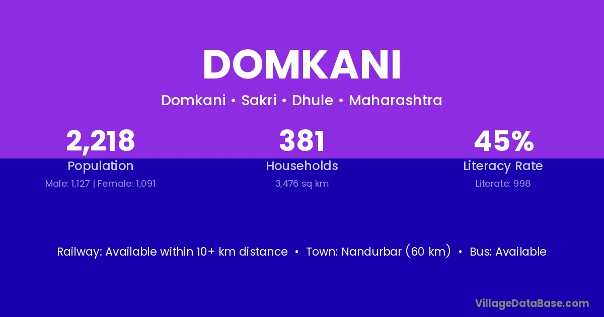 Nandurbar (60 km) is the nearest town to Domkani village for major economic activities and is located approximately 60 km away.