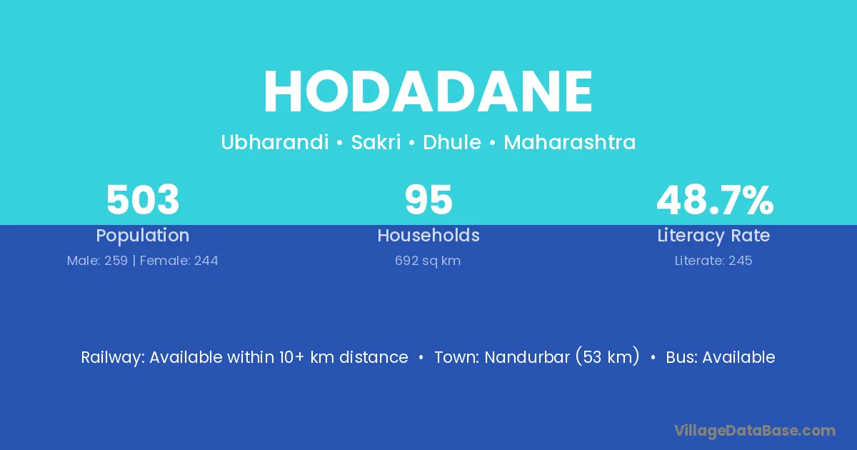 Nandurbar (53 km) is the nearest town to Hodadane village for major economic activities and is located approximately 53 km away.