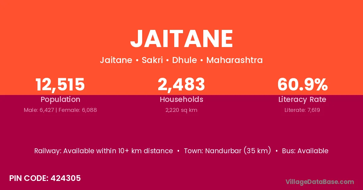 Nandurbar (35 km) is the nearest town to Jaitane village for major economic activities and is located approximately 35 km away.