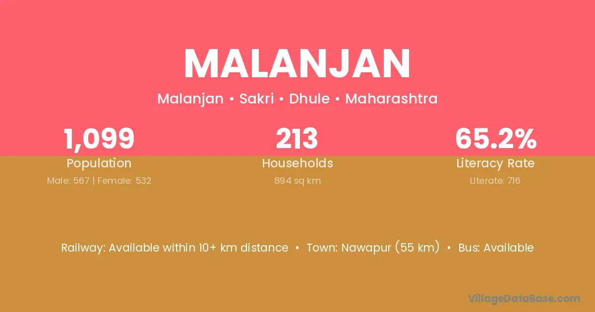 Nawapur (55 km) is the nearest town to Malanjan village for major economic activities and is located approximately 55 km away.