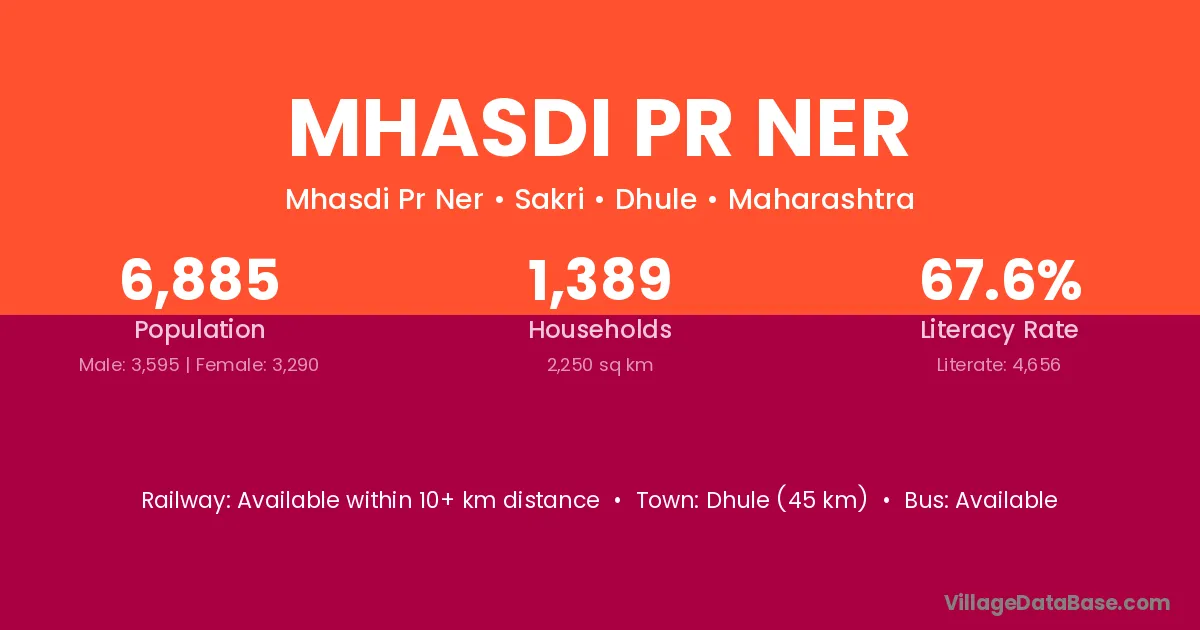 Dhule (45 km) is the nearest town to Mhasdi Pr Ner village for major economic activities and is located approximately 45 km away.