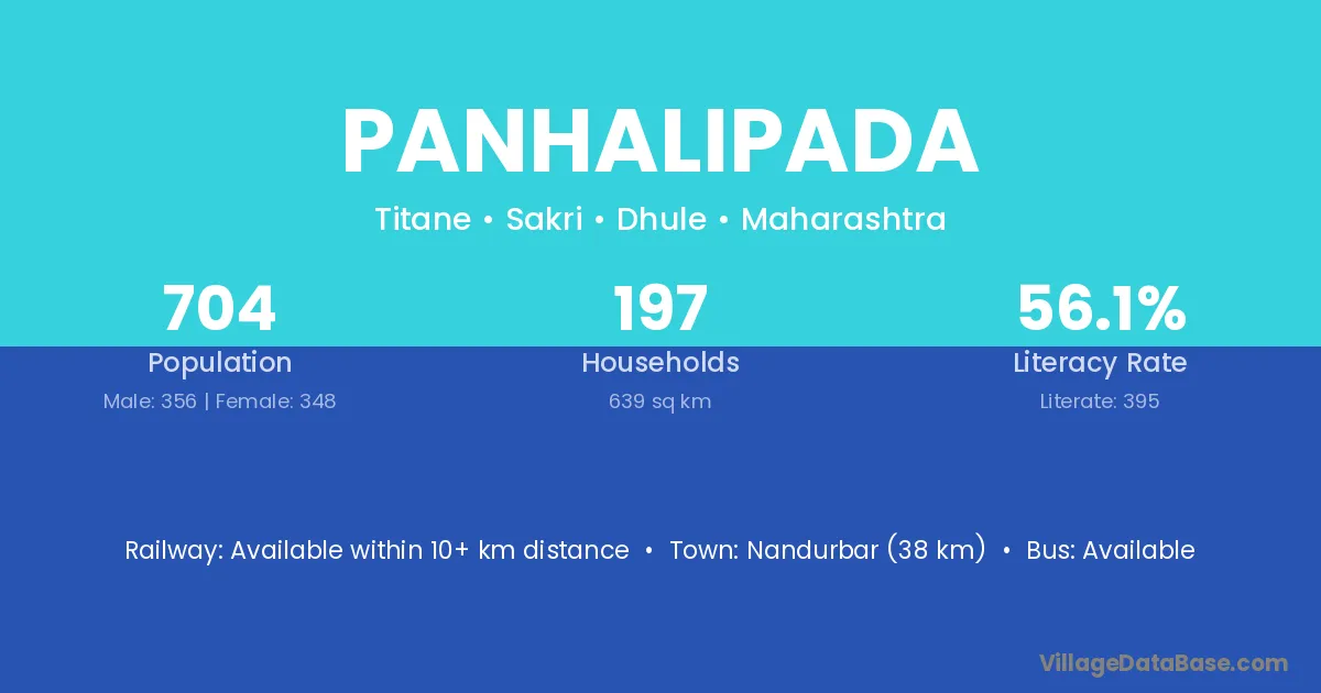 Nandurbar (38 km) is the nearest town to Panhalipada village for major economic activities and is located approximately 38 km away.