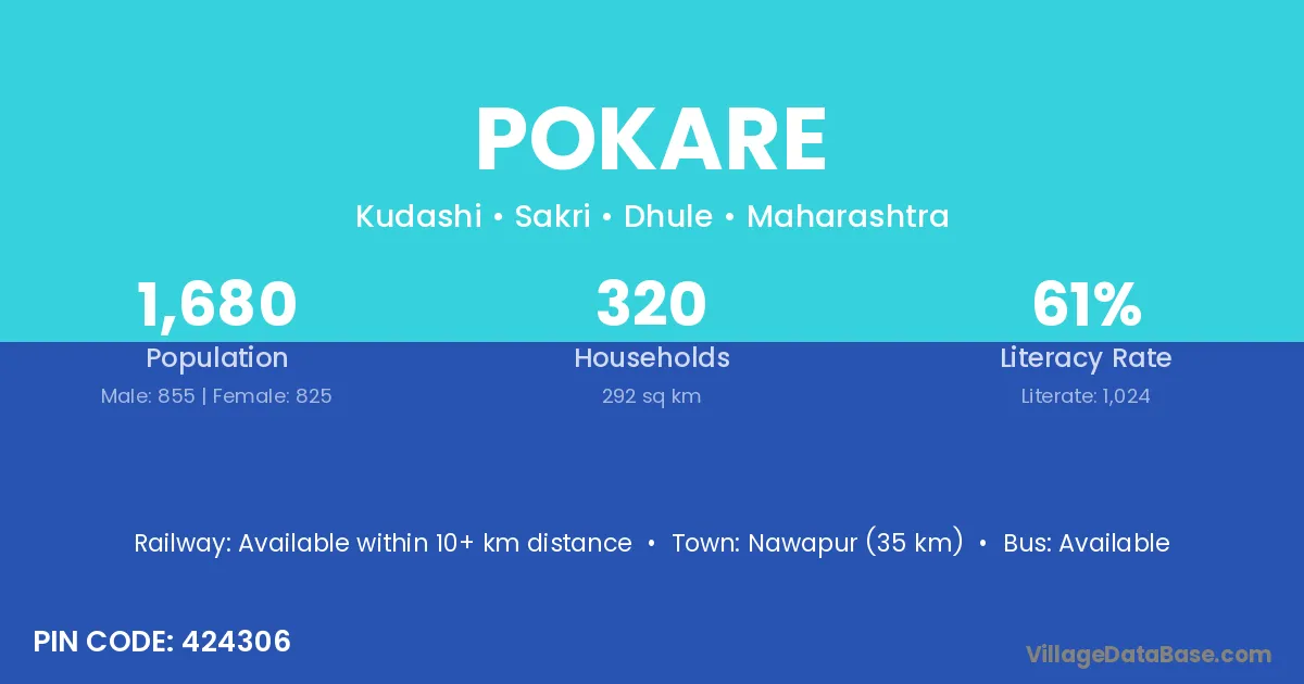 Nawapur (35 km) is the nearest town to Pokare village for major economic activities and is located approximately 35 km away.
