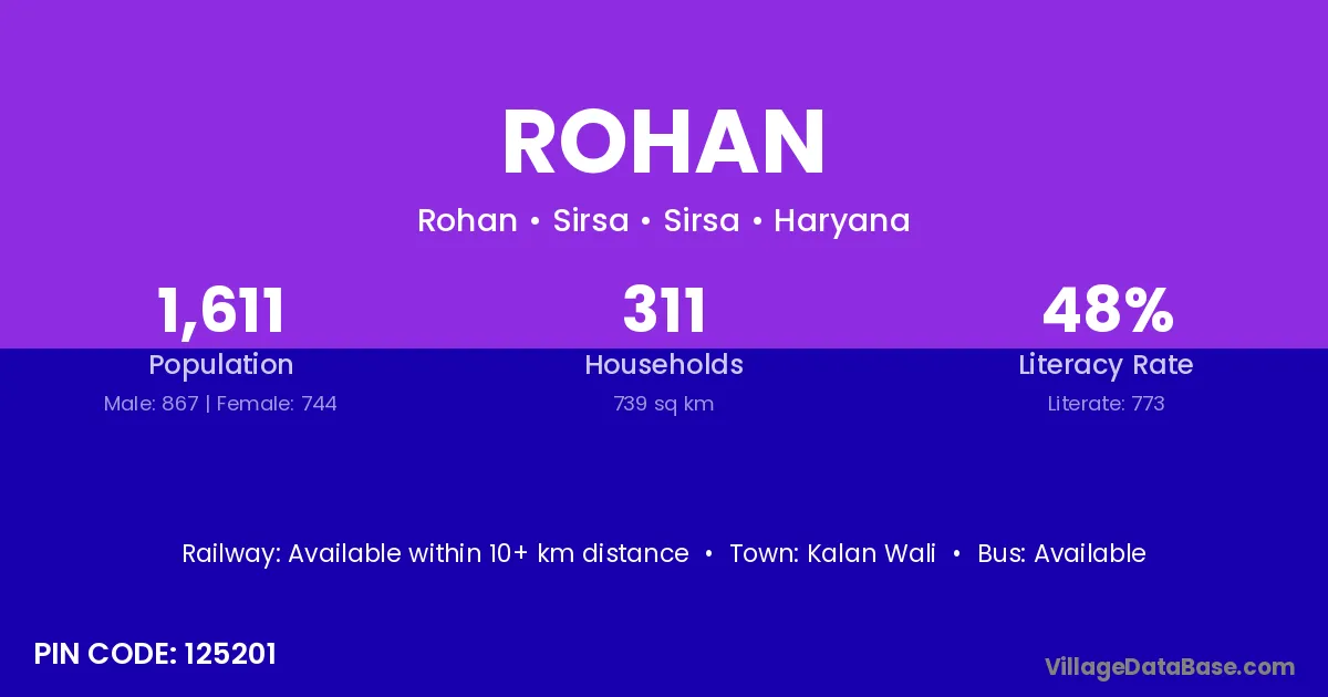 According to Census 2011 information, the village code of Rohan village is 424306.