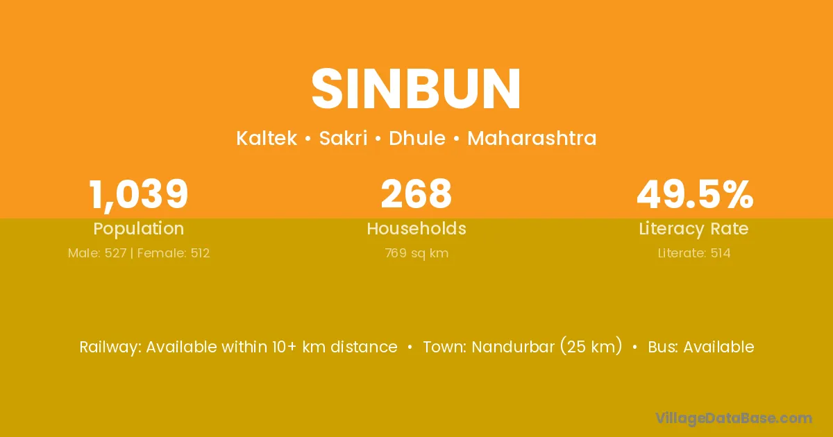 Nandurbar (25 km) is the nearest town to Sinbun village for major economic activities and is located approximately 25 km away.