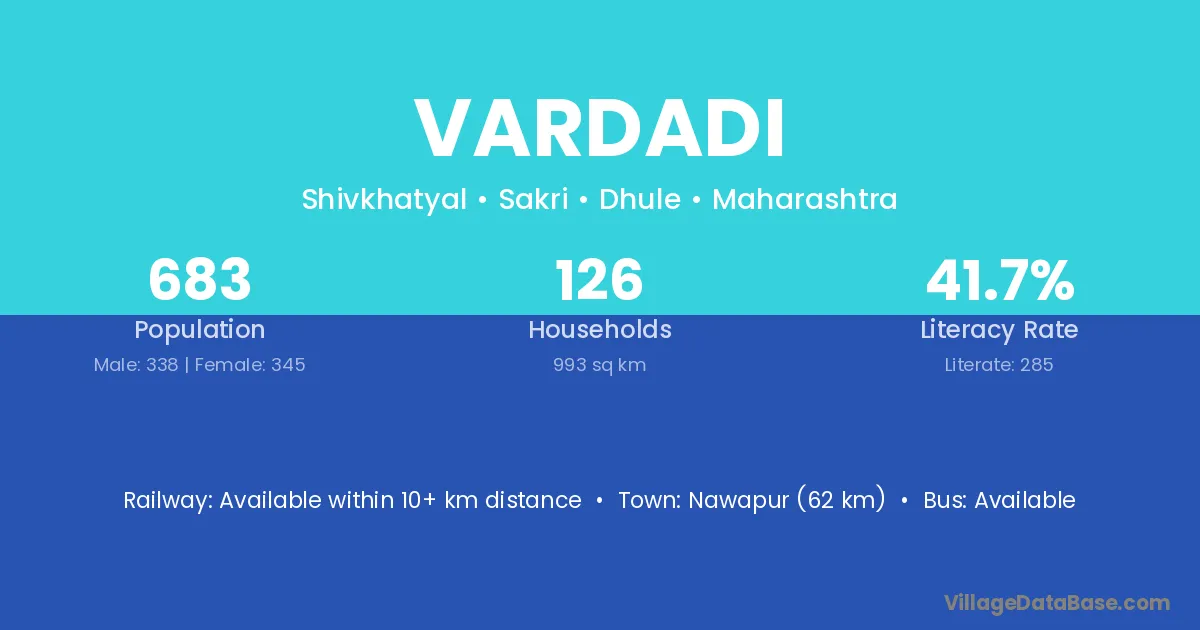 Vardadi village has a total population of 683 people, of which 338 are males and 345 are females.