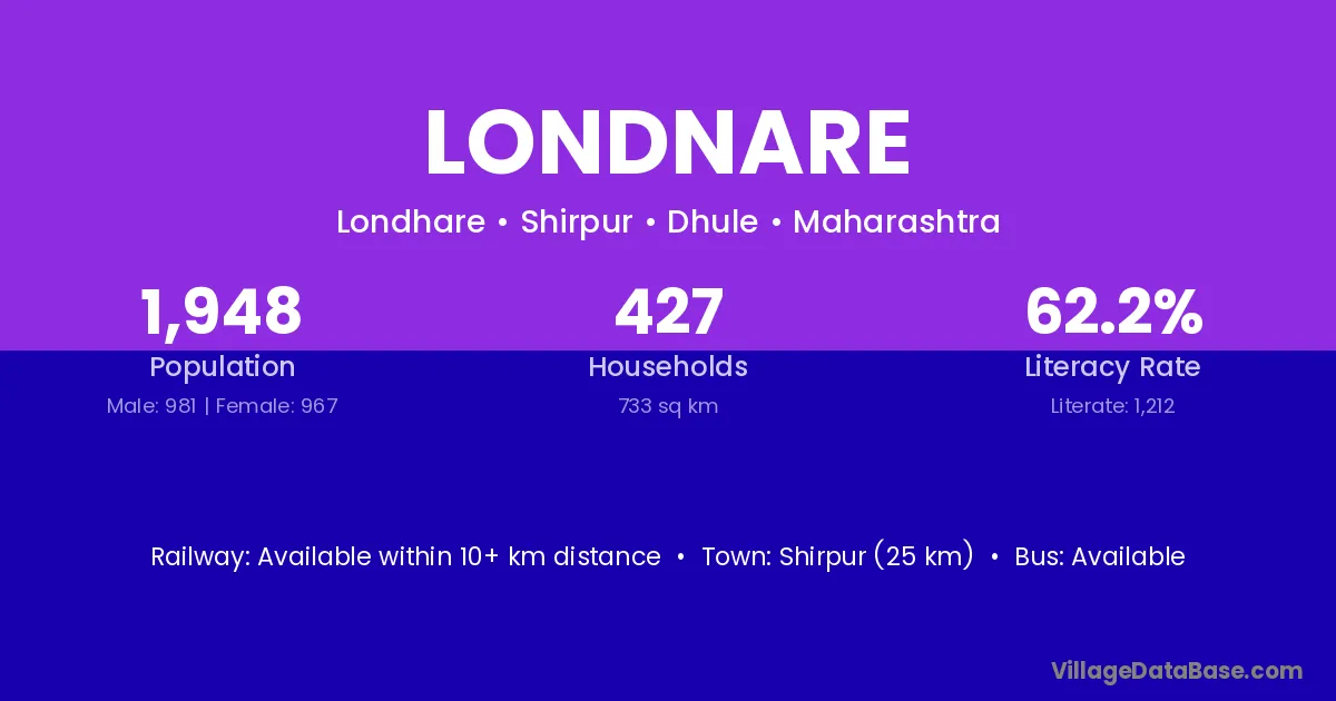 Shirpur (25 km) is the nearest town to Londnare village for major economic activities and is located approximately 25 km away.