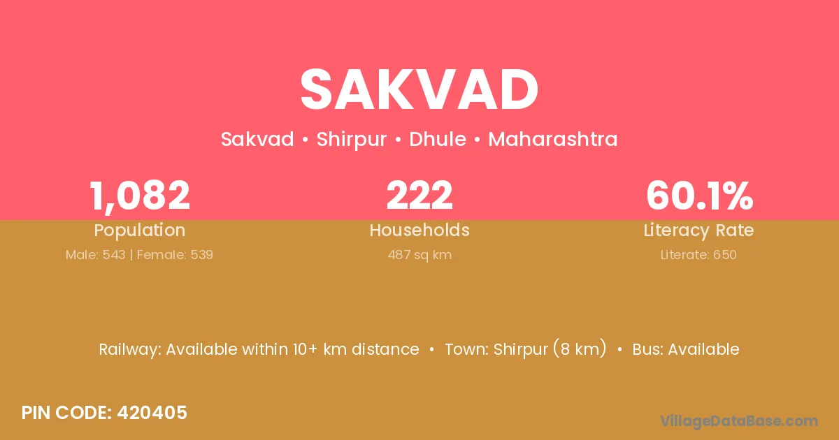 Shirpur (8 km) is the nearest town to Sakvad village for major economic activities and is located approximately 8 km away.