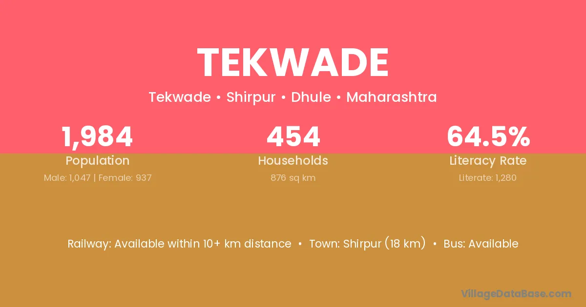 Shirpur (18 km) is the nearest town to Tekwade village for major economic activities and is located approximately 18 km away.