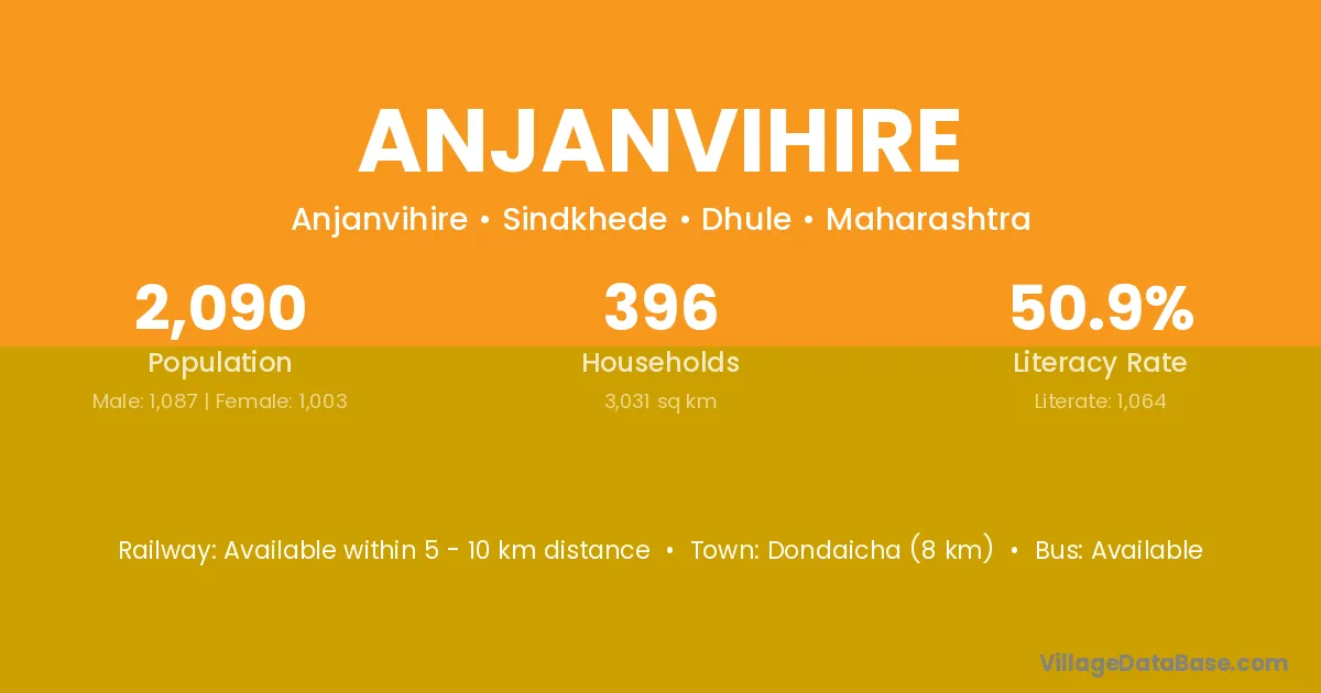 Dondaicha (8 km) is the nearest town to Anjanvihire village for major economic activities and is located approximately 8 km away.