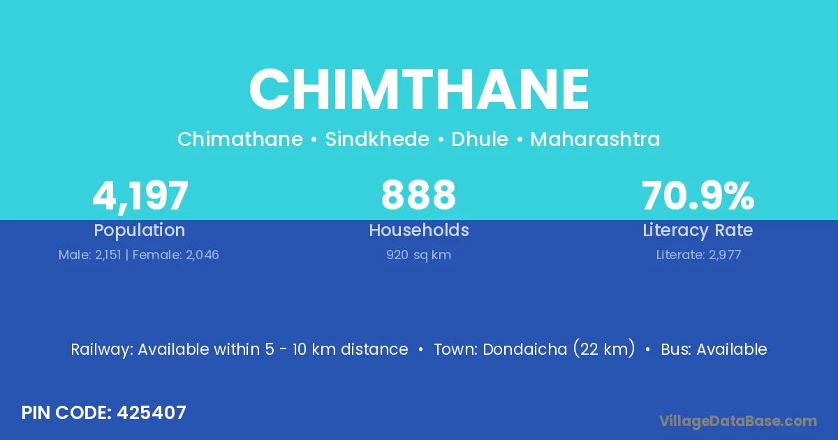 Dondaicha (22 km) is the nearest town to Chimthane village for major economic activities and is located approximately 22 km away.