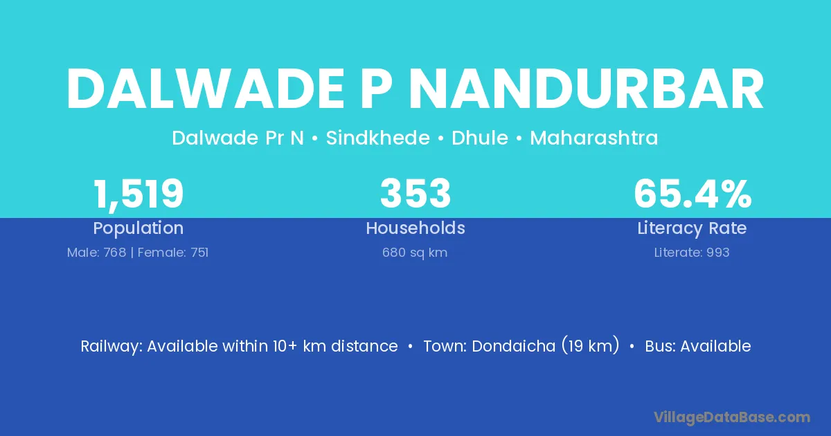 Dalwade P Nandurbar village has a total population of 1,519 people, of which 768 are males and 751 are females.