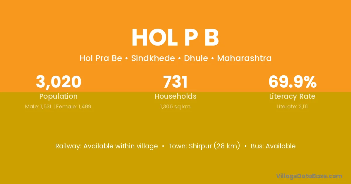 Hol P B village has a total population of 3,020 people, of which 1,531 are males and 1,489 are females.