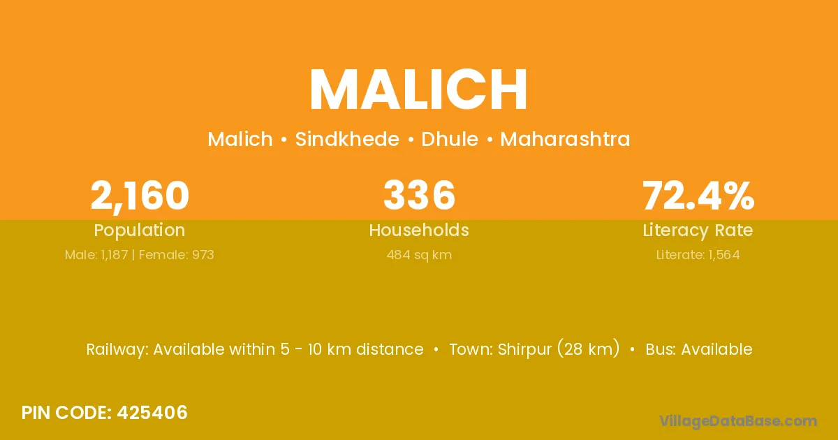 Shirpur (28 km) is the nearest town to Malich village for major economic activities and is located approximately 28 km away.
