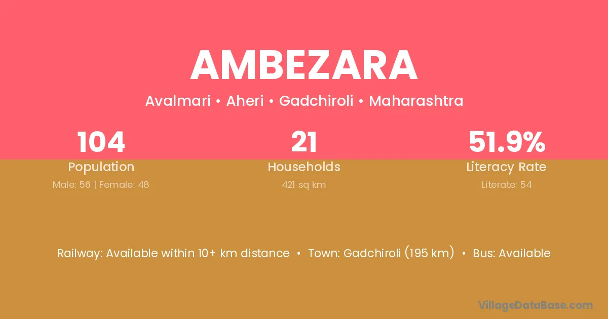 Gadchiroli (195 km) is the nearest town to Ambezara village for major economic activities and is located approximately 195 km away.