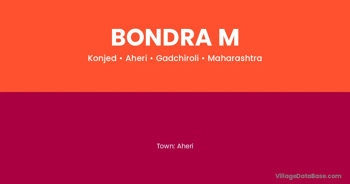 Aheri is the nearest town to Bondra M village for major economic activities