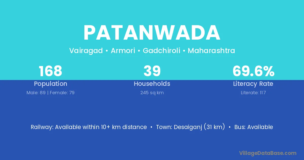 Desaiganj (31 km) is the nearest town to Patanwada village for major economic activities and is located approximately 31 km away.