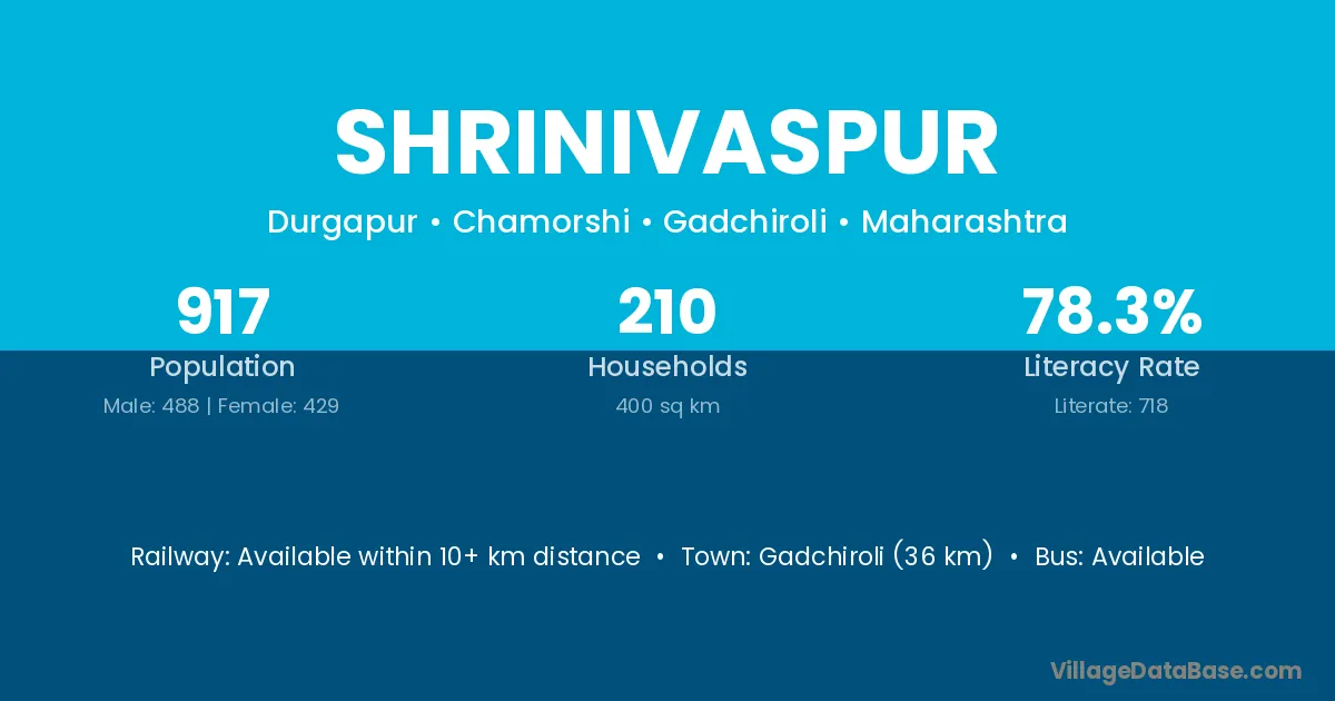 Gadchiroli (36 km) is the nearest town to Shrinivaspur village for major economic activities and is located approximately 36 km away.