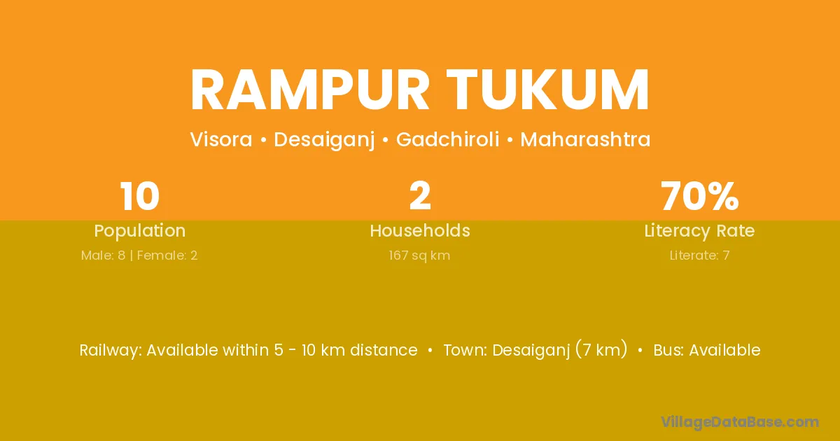Rampur Tukum village has a total population of 10 people, of which 8 are males and 2 are females.