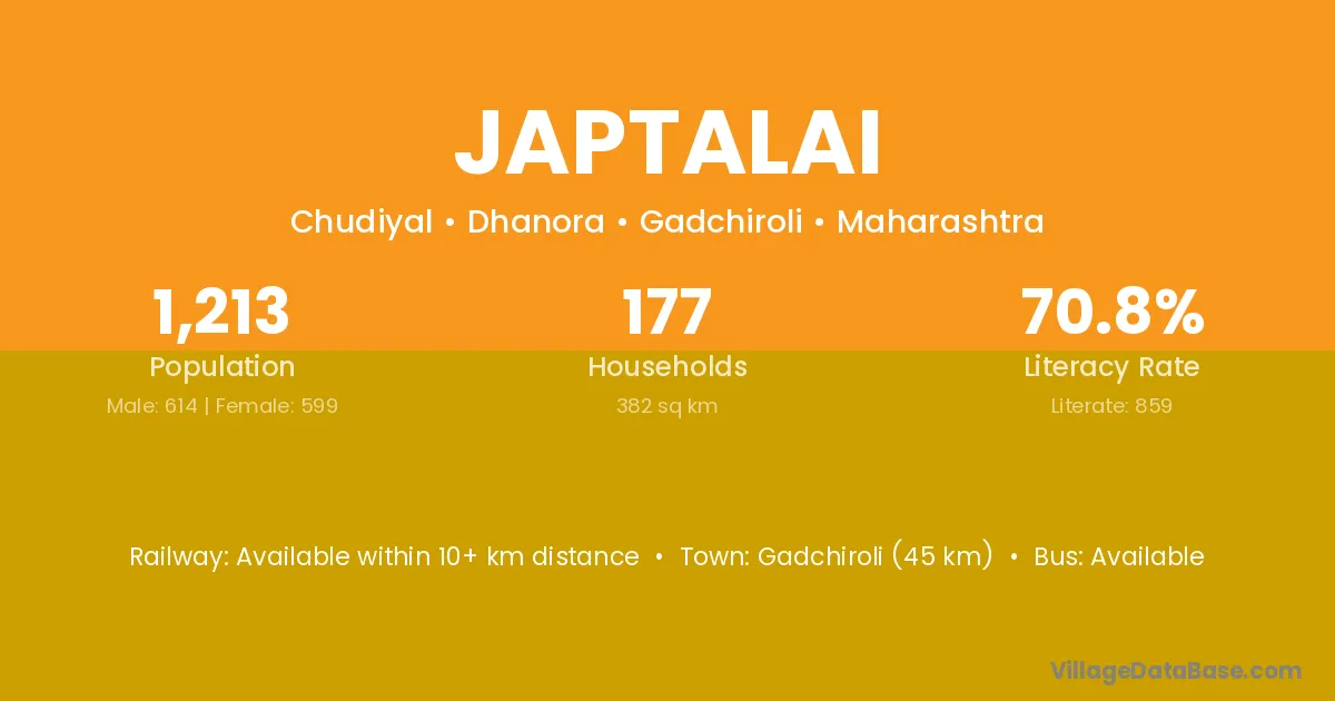 Gadchiroli (45 km) is the nearest town to Japtalai village for major economic activities and is located approximately 45 km away.
