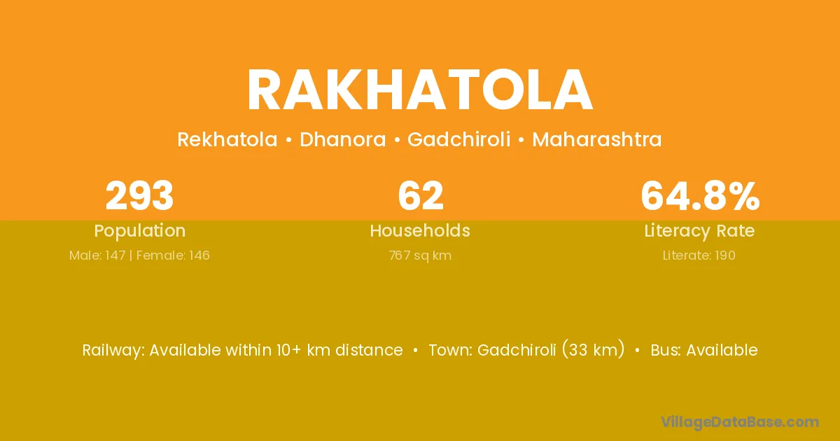 Gadchiroli (33 km) is the nearest town to Rakhatola village for major economic activities and is located approximately 33 km away.