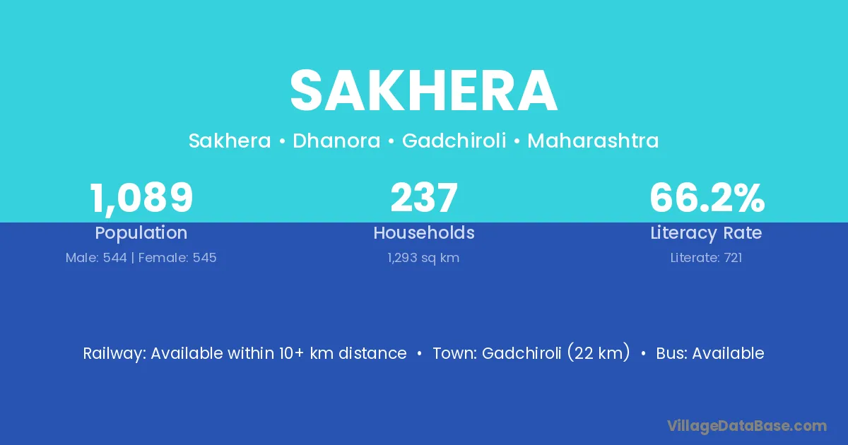 Gadchiroli (22 km) is the nearest town to Sakhera village for major economic activities and is located approximately 22 km away.