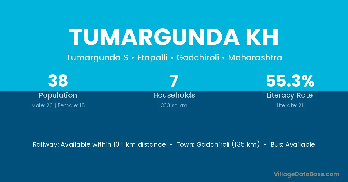 Gadchiroli (135 km) is the nearest town to Tumargunda Kh village for major economic activities and is located approximately 135 km away.