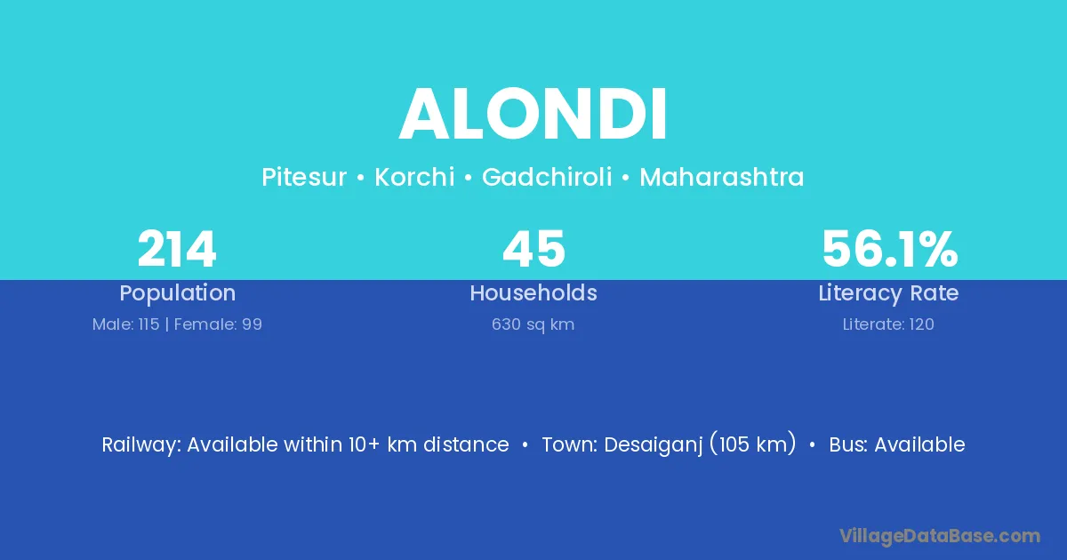 Desaiganj (105 km) is the nearest town to Alondi village for major economic activities and is located approximately 105 km away.