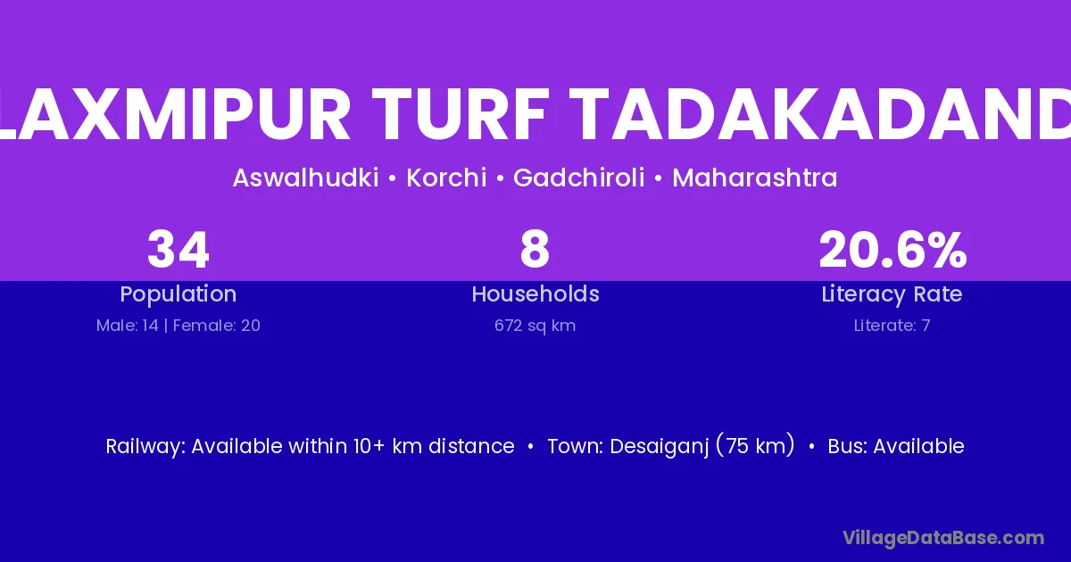 Desaiganj (75 km) is the nearest town to Laxmipur Turf Tadakadand village for major economic activities and is located approximately 75 km away.