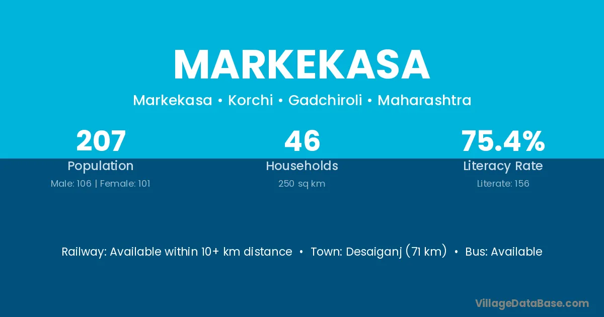 Markekasa village has a total population of 207 people, of which 106 are males and 101 are females.