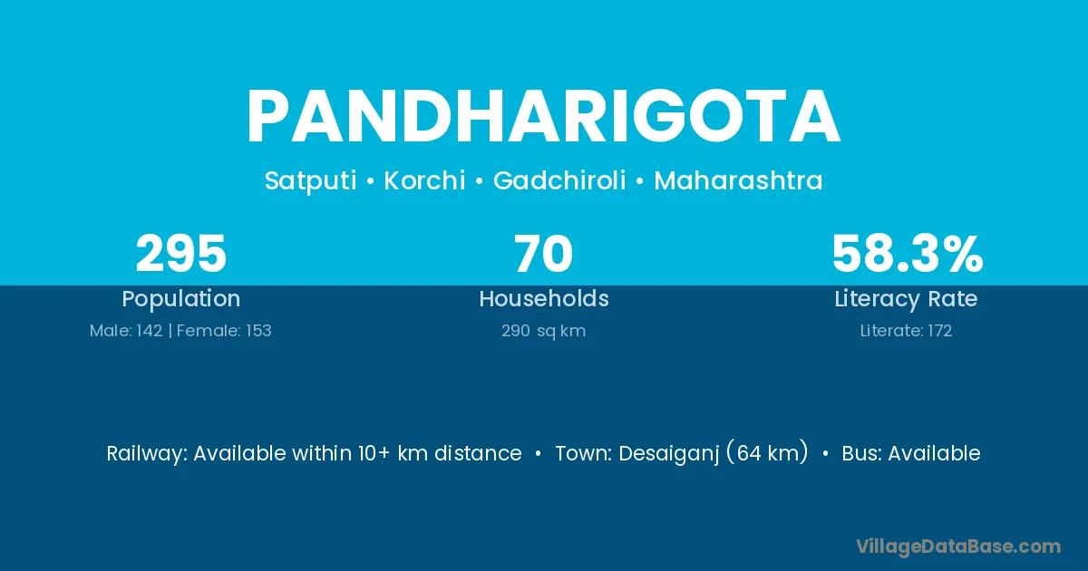 Desaiganj (64 km) is the nearest town to Pandharigota village for major economic activities and is located approximately 64 km away.