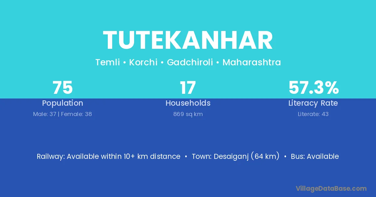 Desaiganj (64 km) is the nearest town to Tutekanhar village for major economic activities and is located approximately 64 km away.