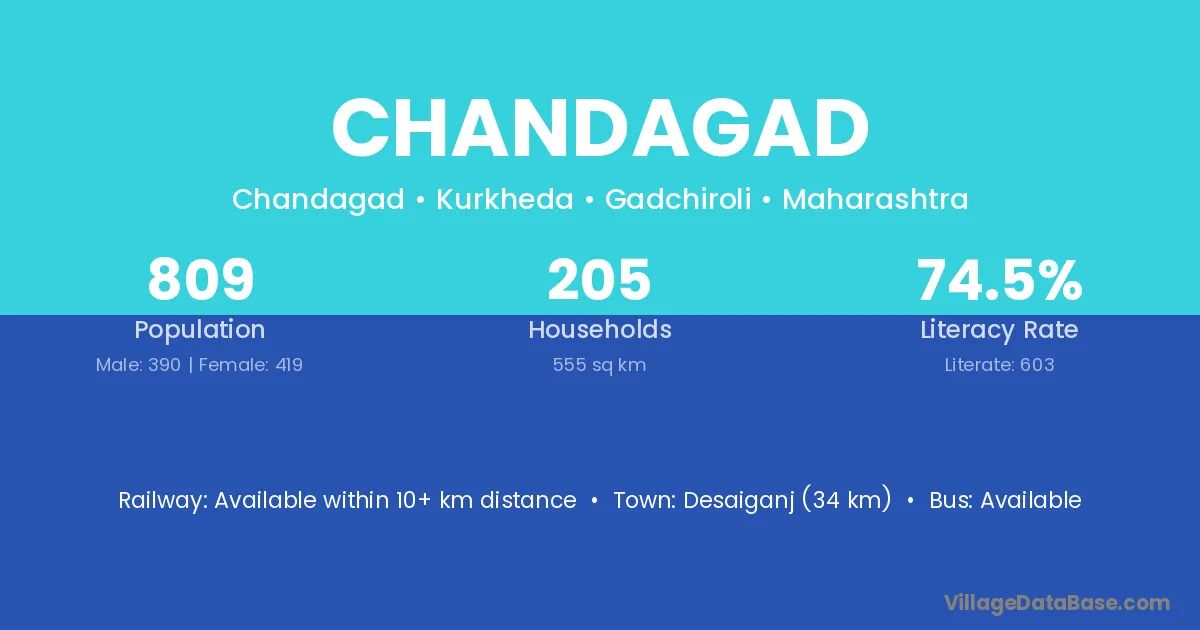 Desaiganj (34 km) is the nearest town to Chandagad village for major economic activities and is located approximately 34 km away.