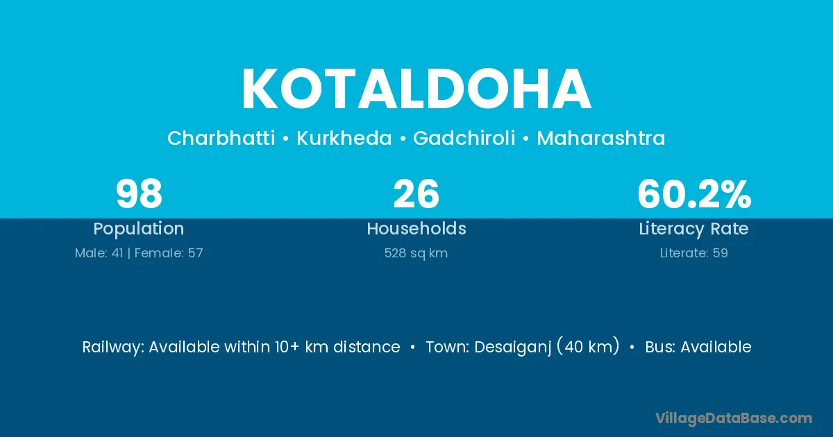 Desaiganj (40 km) is the nearest town to Kotaldoha village for major economic activities and is located approximately 40 km away.