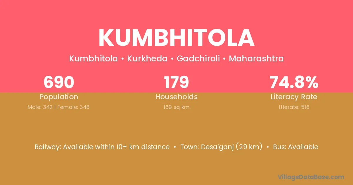 Kumbhitola village has a total population of 690 people, of which 342 are males and 348 are females.
