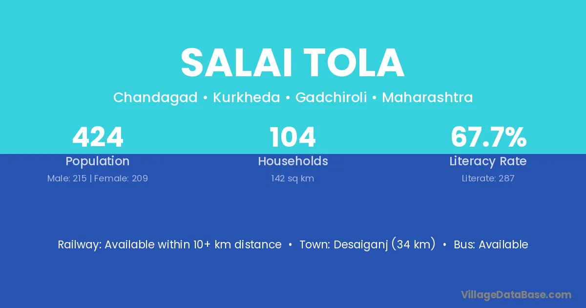Desaiganj (34 km) is the nearest town to Salai Tola village for major economic activities and is located approximately 34 km away.