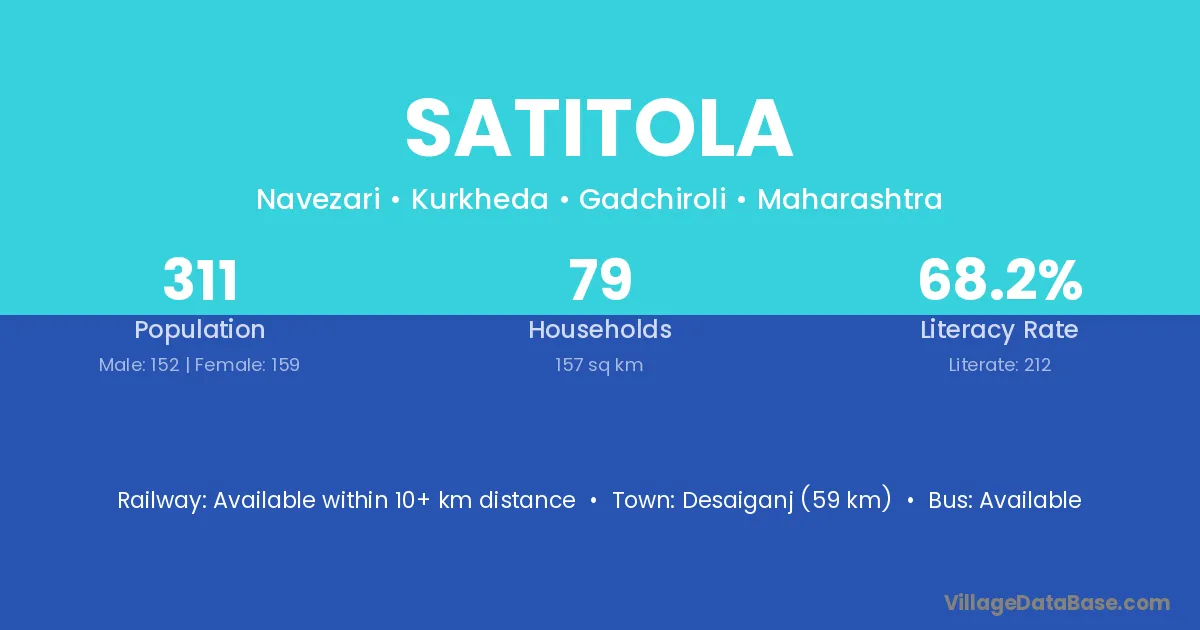 Satitola village has a total population of 311 people, of which 152 are males and 159 are females.
