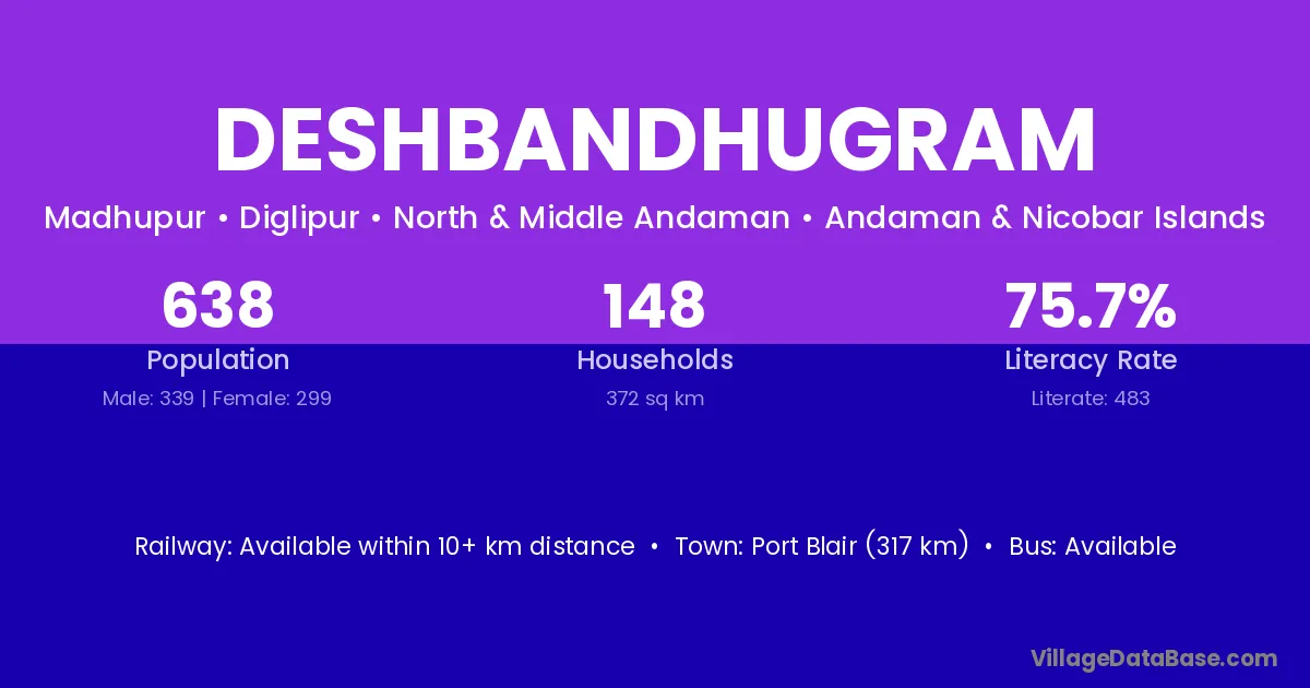 Deshbandhugram village has a total population of 1,402 people, of which 724 are males and 678 are females.