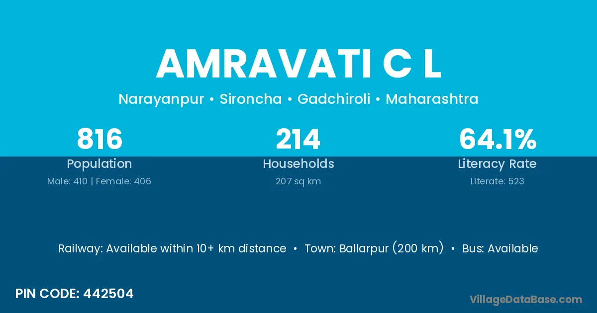 Amravati C L village has a total population of 816 people, of which 410 are males and 406 are females.