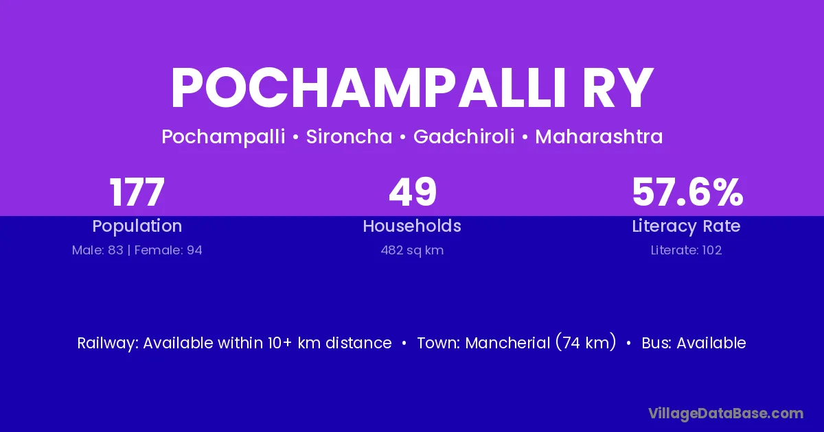 Pochampalli Ry village is located in the Sironcha Tehsil of the Gadchiroli district in Maharashtra .