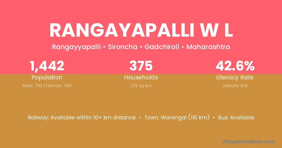 Rangayapalli W L village has a total population of 1,442 people, of which 742 are males and 700 are females.
