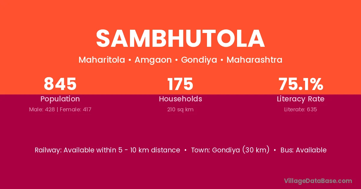 Sambhutola village has a total population of 845 people, of which 428 are males and 417 are females.